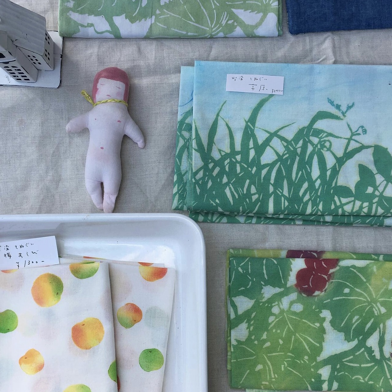 | オススメ商品のこだわりポイント | 日々の暮らしの中で見つけた、美しいものや美味しいものを図案にして、1枚1枚手染めしています。 |