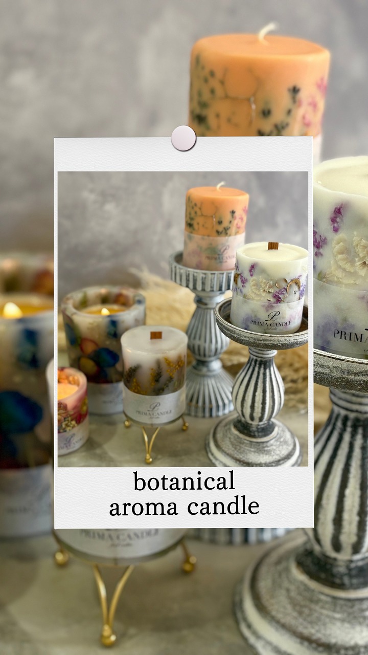 1つ1つ、こだわりを持ってお作りしているオリジナルアロマキャンドルです。1日の始まりや終わりにキャンドルを灯し、ホッとリラックスできる時間を楽しんでみてください。全て手作りで、同じ物がないので、お気に入りを見つけていただけると嬉しいです。
