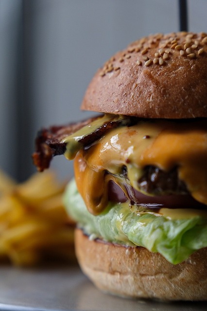 | オススメ商品のこだわりポイント | 当店の自家製ベーコンは数種類のスパイスで10日以上寝かせ、乾燥に1日、燻製に3時間以上じっくりかけた自慢のベーコンです。当店自慢のステーキ肉のようなパティとの相性は抜群です。 |