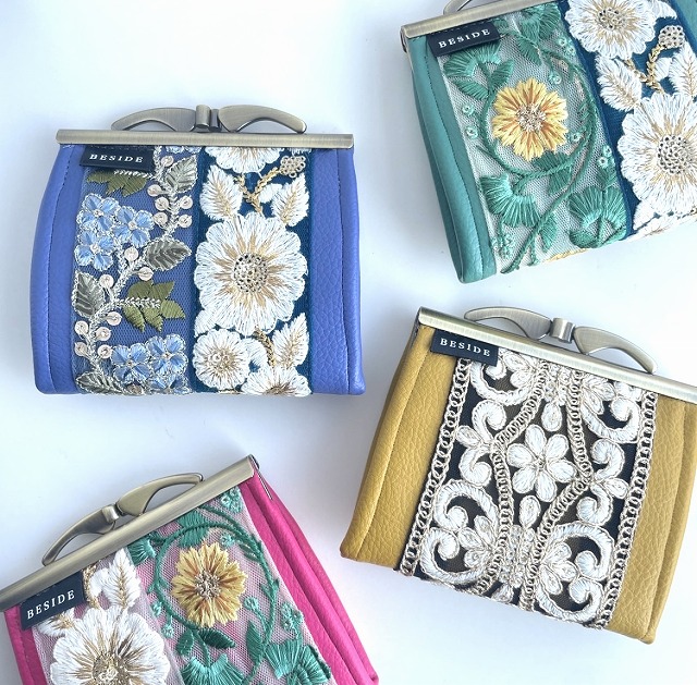 美しいインド刺繍リボンの魅力がつまったお財布です。是非一度手に取ってご覧ください