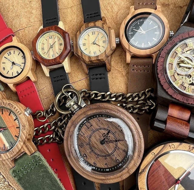 | オススメ商品のこだわりポイント | ウッド&レザーウォッチの本体部分は間伐材や廃材として処分される木材から削り出して使用、また、レザーバンドについても傷が付いて素材として売れなくなくなってしまった革から使える部分のみを使用して、環境への負担も最小限に抑えております。 |