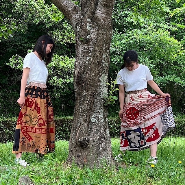 | オススメ商品 | レトロな手ぬぐいを柄や色の配置も考え縫い合わせたスカートにっかぽっか。とても軽い着心地になっています |