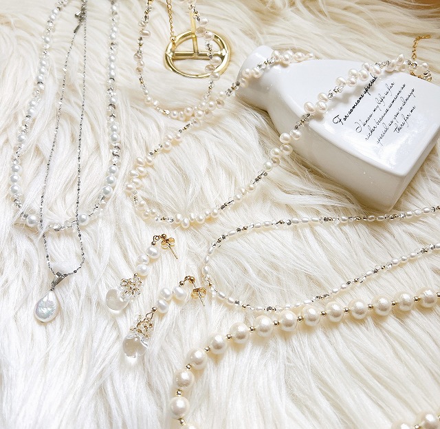 | オススメ商品のこだわりポイント | 上質な淡水パールを贅沢に使用し、上品さの中にさりげない遊び心をプラス。普段の装いにそっと華を添え、特別な日には品格を引き立てる...どんなシーンにも寄り添う大人のためのアクセサリーです。 |