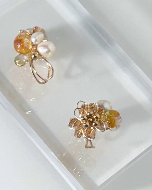 | オススメ商品のこだわりポイント | 季節のお花をモチーフにしたビジューのイヤーカフ。土台からデザインまで全て手作り。複数枚重なる花弁は一つ一つワイヤーで製作。また、お花の色は天然石や、職人が一つ一つ手作りした一点ものガラスビーズなどで表現し、全て手編みでお作りする一点ものです |
