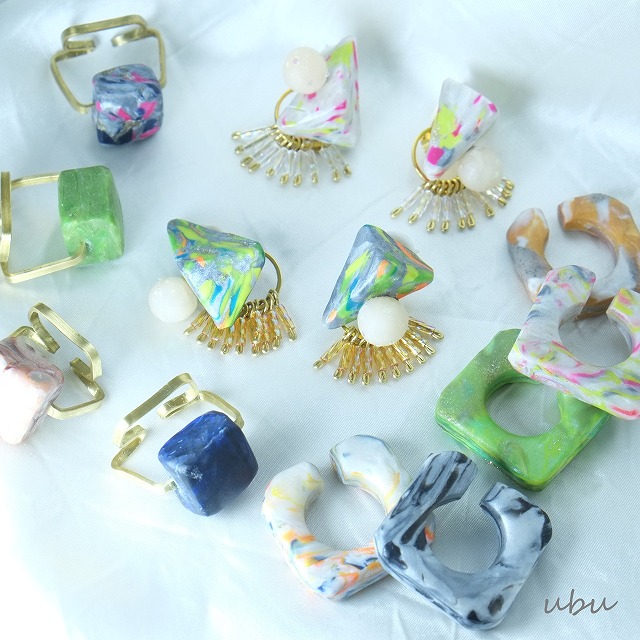 | オススメ商品のこだわりポイント | ○△■イビツなカタチ-樹脂粘土で制作したパーツ彫金で制作した真鍮パーツ異素材を合わせて制作しました |
