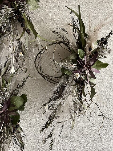 | オススメ商品のこだわりポイント | グレーやシルバーを基調にしたシックでクールなリースを販売します |