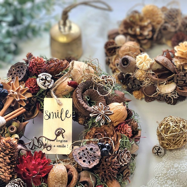 日本各地の木の実を収集しながら主にリースを制作しています。自然や季節を感じ癒され温かい気持ちになれる作品ばかりです。生花のクリスマスリース・木の実のリース・アーティシャルリース・しめ飾り等をご用意しております。皆様のお目にとまりますように