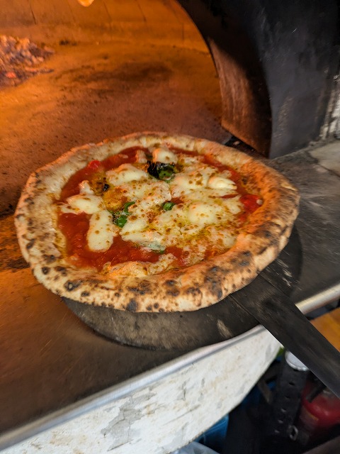 ナポリの薪窯で焼く本格ピッツァ。地元奈良県産の無農薬バジルや野菜,果物を使用したオリジナルピッツァ。