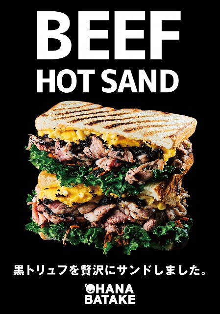 | オススメ商品 | 国産牛の上に黒トリュフを贅沢に使用した当店自慢のホットサンド。 |
