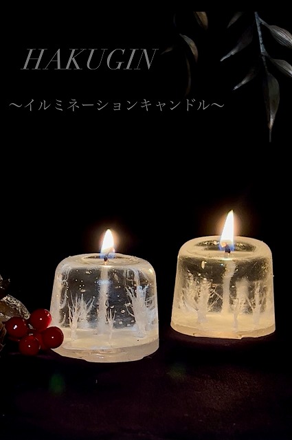 | オススメ商品のこだわりポイント | 雪原の静けさを感じる、シルバーの木をモチーフにした透明キャンドルキャンドルの中に息づくシルバーの木は、まるで雪に覆われた静かな森林の風景を想起させ、心を癒すひとときと共に冬の雰囲気をお部屋に届けます |