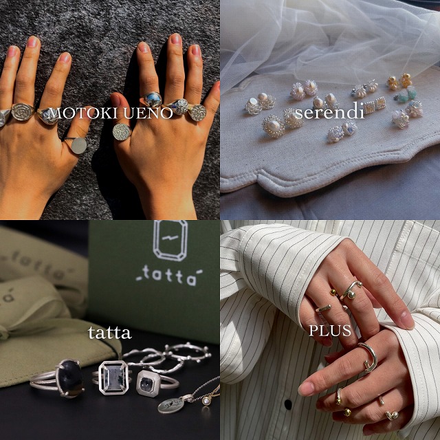 | オススメ商品のこだわりポイント | シルバーや天然石を使用したジュエリーや真鍮とのコンビ、ビーズを施したアクセサリーなど、4つのブランドの様々なジュエリーが1度にご覧いただけます。日常使いにもオケージョンにも着用できるあなたにピッタリのジュエリーに出会えます! |
