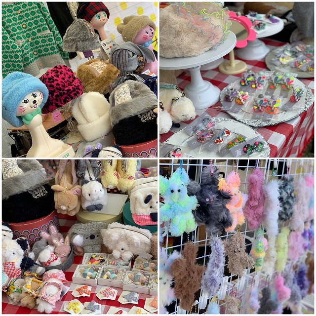 | ワークショップ | もふもふドールキーホルダー/手作りのもふもふドール(5色以上)をご用意してます。その中から1つ選んでいただきメイクしたりデコパーツ(オリジナル90と既製品10)をつけたりして自分だけのもふもふドールを作っていただきます。/15分くらい/税込1000円 |