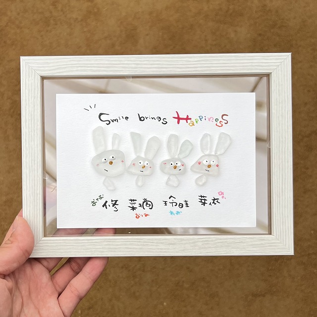 | オススメ商品のこだわりポイント | 海を冒険してきたシーグラスを使った『シーグラスアート』!周りには筆文字で、家族のお名前やメッセージをその場で書き、世界にひとつだけの作品に仕上げています! |