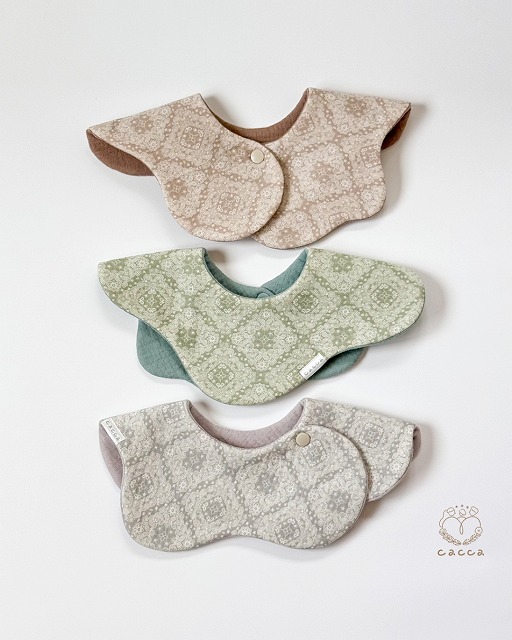 | オススメ商品のこだわりポイント | くるくる回る毎にデザインが変わって見える!リバーシブルで使える、表も裏も前も後ろもない「 新感覚スタイ 」。綿 100% の柔らかいガーゼを使用し、敏感な赤ちゃんのお肌にも優しい触り心地です♡ |