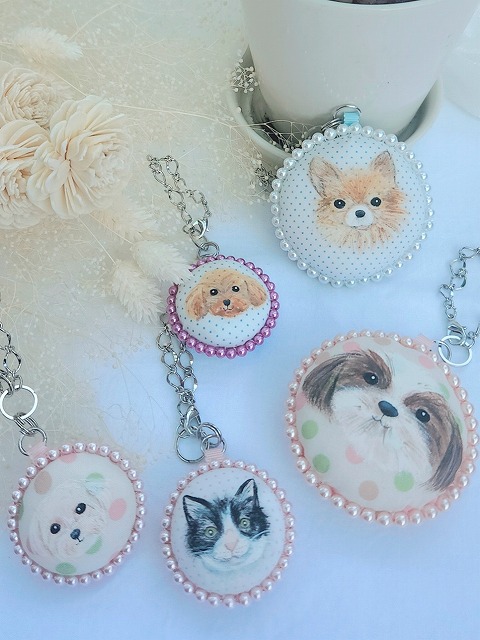 | オススメ商品のこだわりポイント | わんこ、ネコちゃん。手書きで描いています。犬種等も豊富に取り揃えております。ぷっくらとマカロンのようです✨周りにビーズで可愛いデザインの一点物になります。 |