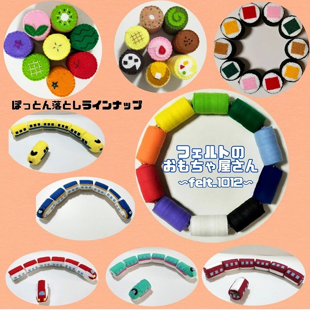 保育士が[こんなのあったらなぁ]をフェルトで形にしたおもちゃを作っています。乳児期から認識しやすいと言われる原色を中心に、赤ちゃんからでも安心して遊べるように接着剤などは使用せず全て手縫いのハンドメイドです。ぜひお立ち寄りください?