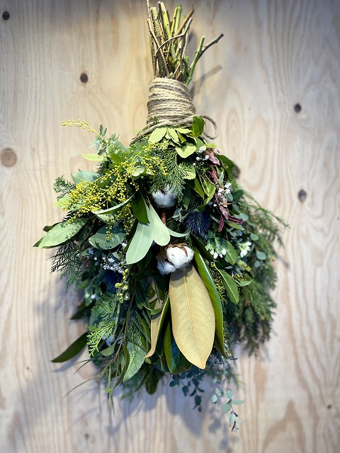| ワークショップ | Greenスワッグ作り/Greenスワッグはご自身で作っても、スタッフが作っても同一価格です。ぜひご自身でワークショップにチャレンジして、Only oneのスワッグをお楽しみください。/最短15分/1000円から |