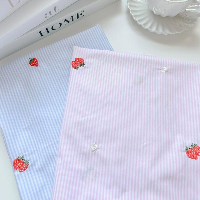 | オススメ商品 | riru➡ワンピース Rin➡いちご刺繍のデニム、ストライプ柄のオリジナル生地 |