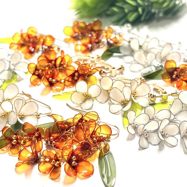 | オススメ商品のこだわりポイント | 1本のワイヤーを形成し作り出すフラワーパーツは身に付けている事を忘れてしまう程とても軽いアクセサリーです。淡水パールやチェコビーズなどを組み合わせて世界に一つだけのアクセサリーに仕上げました。金具は全て金属アレルギー対応金具です。 |