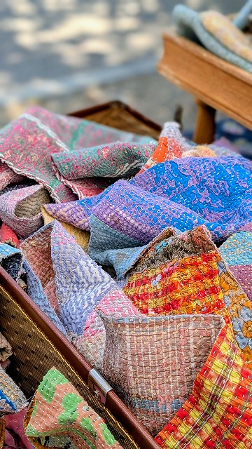 | オススメ商品のこだわりポイント | 何重にも重ねられたキルトが、長年の使用でスレて破れてユニークなグラデーションに!一見『ボロ』な布たちです。長く永く愛用されてきたからこその美しいヴィンテージファブリックです。布の芸術です! |