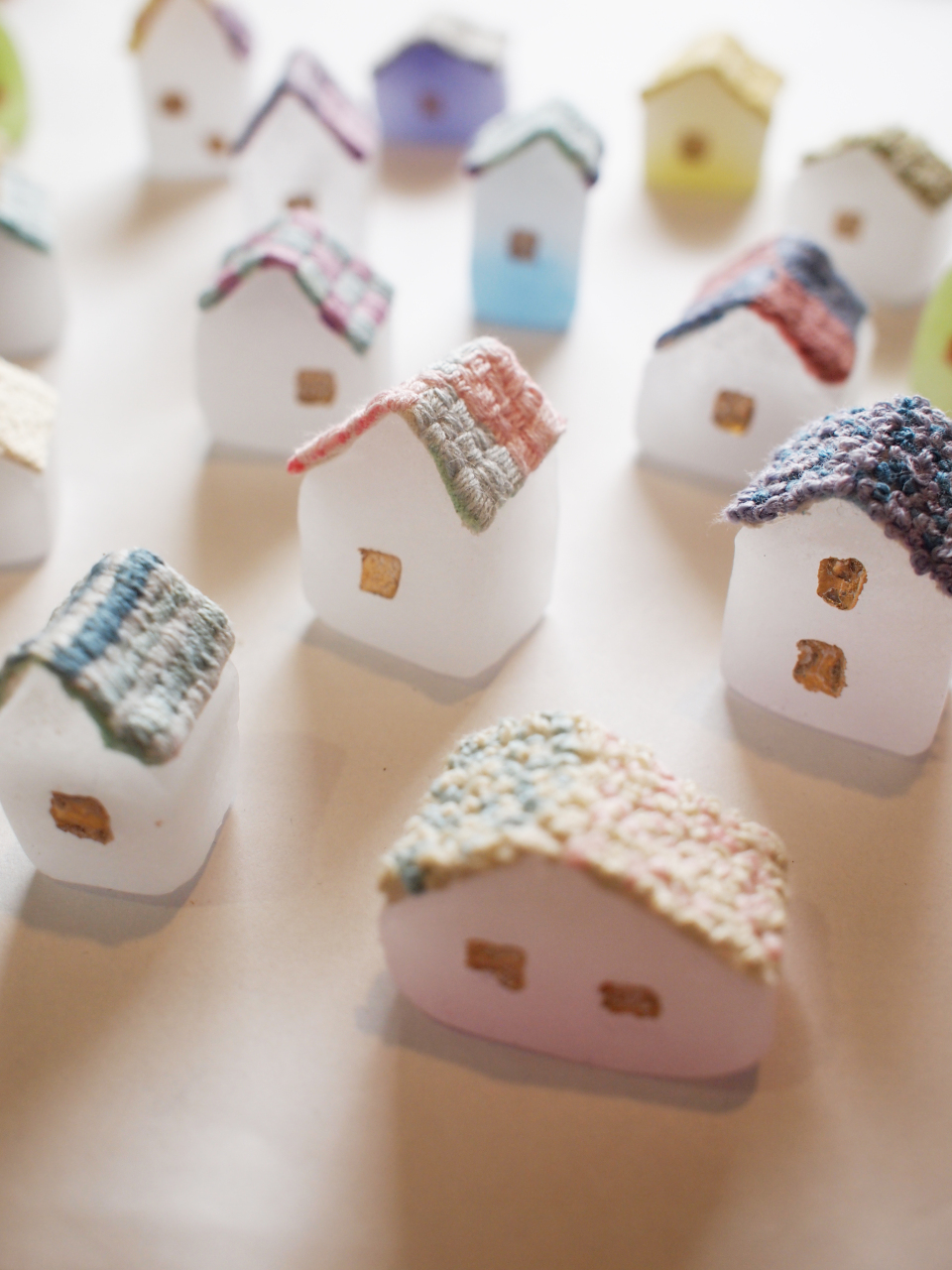 | オススメ商品のこだわりポイント | ひとつひとつ粘土で成形して型を取り、ガラスの粉を詰めて焼き削ってできあがったおうちに、金彩をほどこして窓に灯りをともし、草木染めの糸で一刺一刺、刺繍を施した屋根をかぶせています。手のひらサイズのおうちのオブジェはすべてが一点もの。自分のこころの声を聴いて、しっくりくるおうちを選んでください。 |