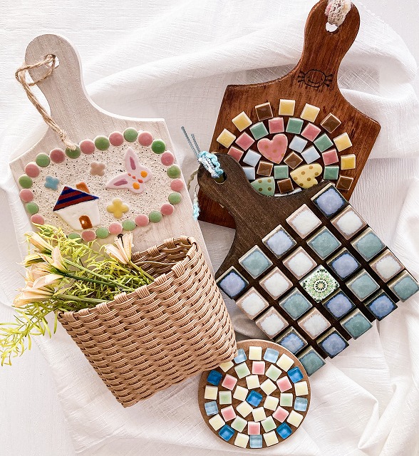 オススメ商品 | タイルクラフトワークショップ、食品トーレーを使った再生リボンアート、スペインタイル雑貨、ソフトシリコ |