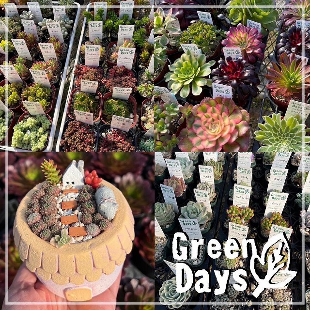 愛知県で多肉植物を栽培、販売しているグリーンデイズです。是非、かわいい多肉植物を見にきてくださいね!
