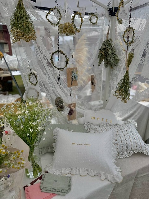 オススメ商品のこだわりポイント | ときめく色合わせから生まれたニュアンスカラーのクッションや布小物。日々を彩る植物や可愛い季節のお花やドライフラワ一。お部屋をコーディネートするようにディスプレイします。 |