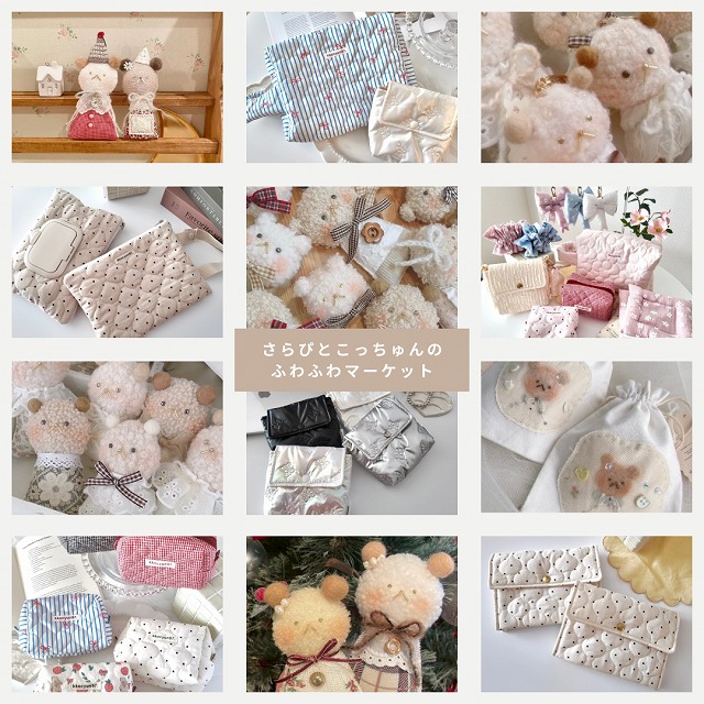 「さらぴとこっちゅんのふわふわマーケット」へようこそ!羊毛ぬいぐるみや韓国生地の布小物など、ふたりの“すき”とこだわりがぎゅっと詰まった、生地も心もふわふわの手づくり雑貨を並べています。優しいふわふわな空間でお待ちしています:)